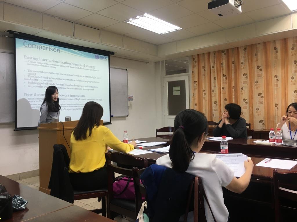 本次会议有来自墨尔本大学、香港大学、北京大学等知名学府的教授参加。卢佩融代表合作者霍伟伟老师作关于《Strategic Environment and“Troika”:A case study based on hospitality industry in China》的演讲:分析了中国服务业在国际化道路上遇到的一系列机遇,挑战和对策。作为参会代表中唯一一名本科生,卢佩融同学以流利的英文,清楚的逻辑,严谨的演讲内容,获得会场老师的惊叹和好评。香港大学教授Christine Chan还推荐卢同学申请香港大学硕士研究生。